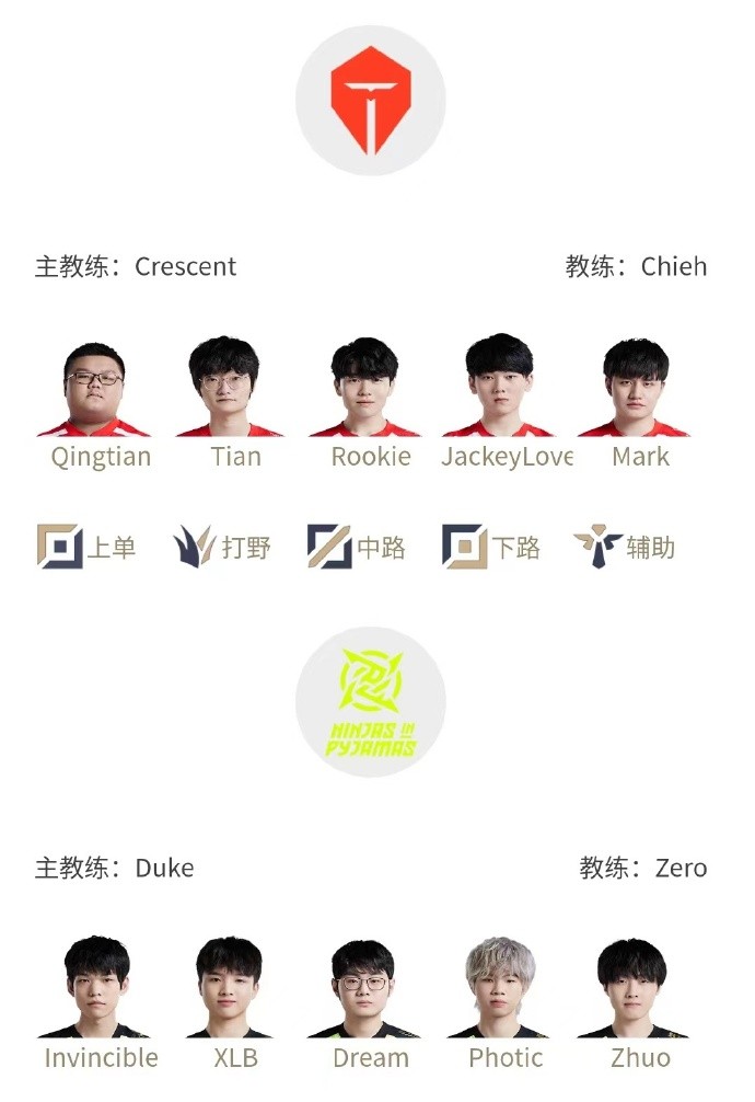 TES首发:Qingtian、Tian、Rookie、JackeyLove、Mark