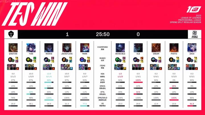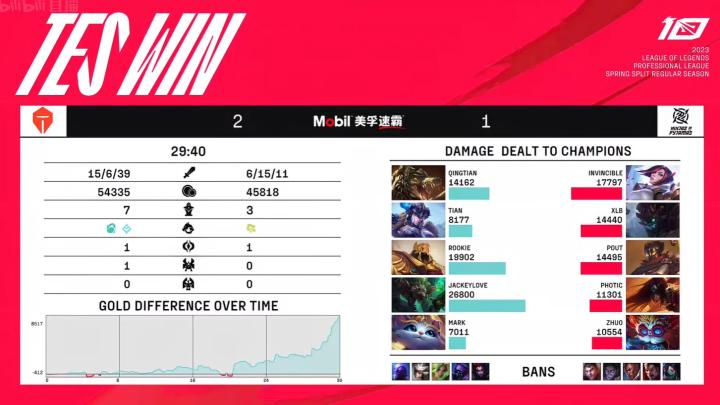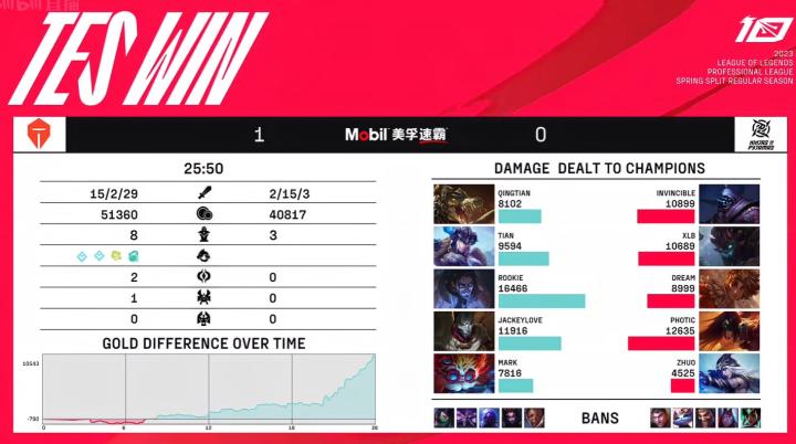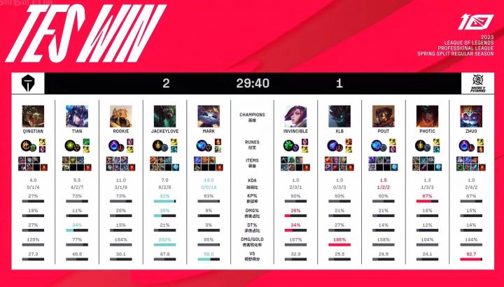 LPL春季赛:TES 2-1 NIP,TES火力全开、猫和老鼠横扫战场