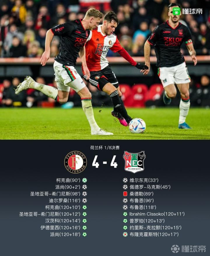 荷兰杯费耶诺德点球大战5-3奈梅亨晋级,迪尔罗桑两传一射