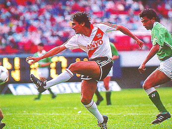 1991年迪亚斯短暂回归河床,两年后他又解锁了新任务,日本J联赛成了他职业生涯的终点站。即便迈入球员时代的暮年,来到东亚“技术扶贫”的迪亚斯依旧势不可挡,1993赛季他以28粒进球荣膺J联赛最佳射手。