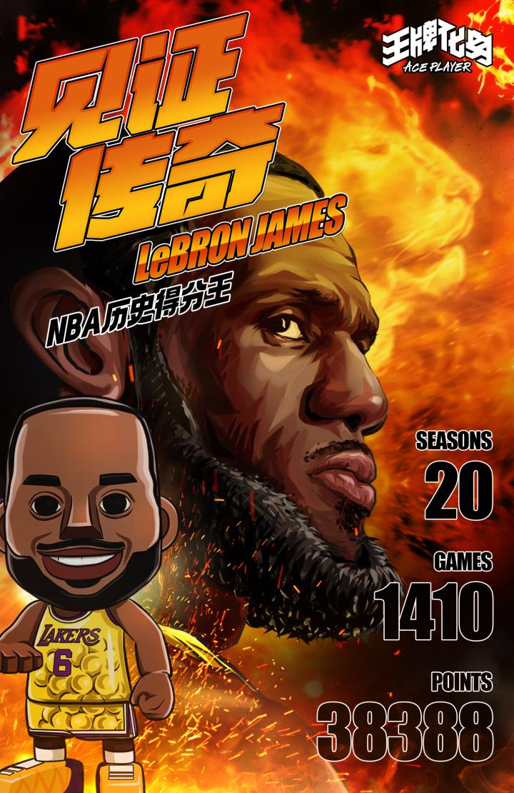 2019年1月26日,他在得分上完成了对乔丹的超越,然后是2020年1月26日超越科比,2022年3月20日超越马龙,和今天超越贾巴尔,登顶总得分榜。
