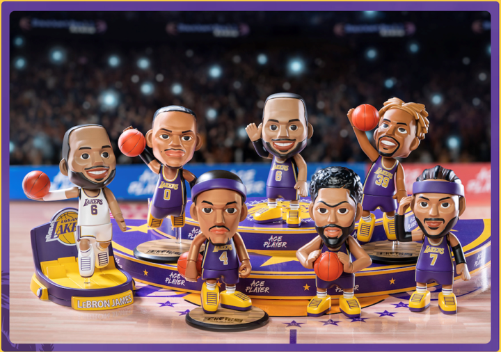 王牌化身获得NBA官方授权,推出了众多炙手可热的NBA产品系列,包括洛杉矶湖人球队盲盒、詹姆斯MONEY BALL等。