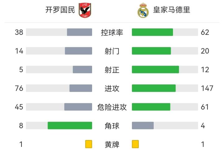 北京时间2月9日03:00,世俱杯半决赛在摩洛哥穆莱-阿布德拉赫王子体育场展开争夺,开罗国民对阵皇家马德里,本场主裁判为马顿特。上半场,维尼修斯抓住对方后防失误单刀轻巧挑射破门,罗德里戈中柱。下半场,巴尔韦德补射建功,卡马文加送点,阿里-马鲁勒点射扳回一城;随后维尼修斯造点,莫德里奇罚失,罗德里戈与阿里巴斯补时先后破门杀死比赛。最终,皇马多点开花4-1击败开罗国民,与利雅得新月会师世俱杯决赛。