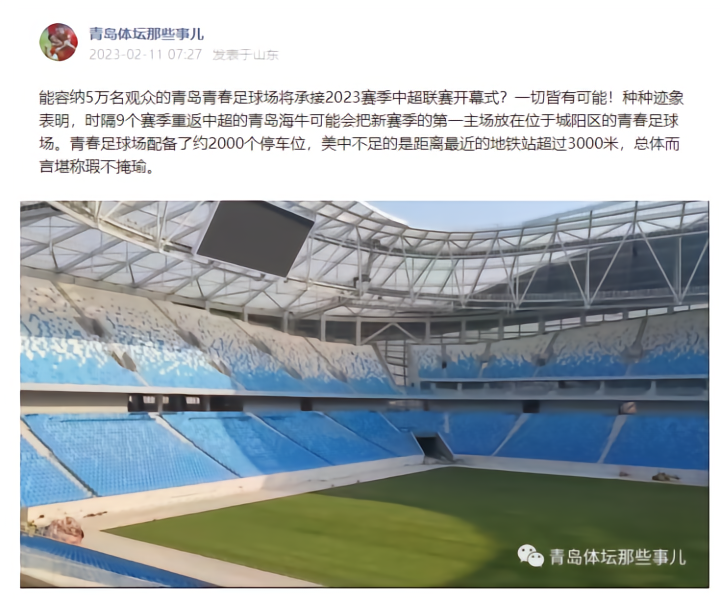 青岛海牛新赛季主场花落青春?