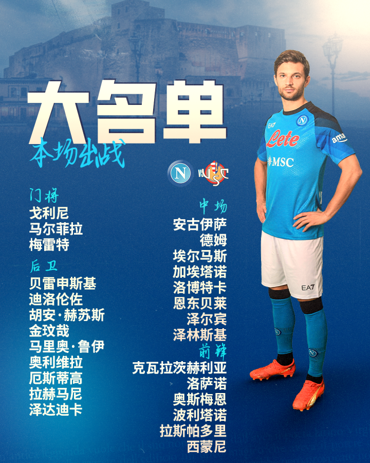 大名单 | 那不勒斯俱乐部公布本轮联赛球员大名单...那不勒斯足球俱乐部 @懂球帝2023-02-12 19:24大名单 | 那不勒斯俱乐部公布本轮联赛球员大名单。此役的大名单与上轮完全一致,斯帕莱蒂派遣最强阵容迎战克雷莫纳!展开更多