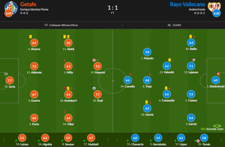 西甲红黑榜:赫塔费vs巴列卡诺