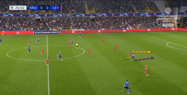 尽管如此,这名20岁的球员对比赛的理解还是非常出色的。他有着出色的位置感,能够很好地感知周围的环境,同时还能保持对球的关注,以了解比赛接下来的方向。下面两幅图片清晰地描绘出了这一点:
