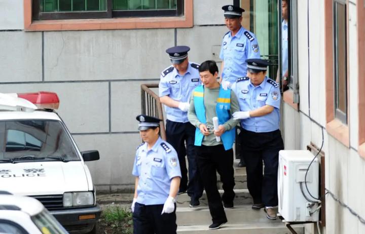 原国家体育总局足管中心主任、中国足协副主席南勇拿着判决书被带出辽宁省铁岭市中级人民法庭
