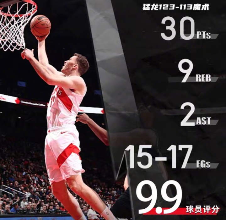重回老东家彻底爆发!猛龙中锋怒砍30分,打爆魔术内线!