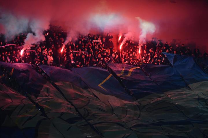 整个夜晚,王子公园球场都响彻着巴黎死忠球迷“超级集团军”的聒噪声——震天的鼓声,高扬的歌声,以及旗帜挥舞时的猎猎风声。即使姆巴佩在最后时刻扳平比分的进球,因为队友毫厘之间的越位而被VAR判决无效时,他们也不曾停下。