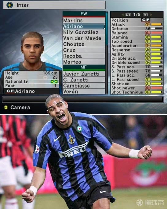 今日图评丨现在实况足球只能回味的经典球员-- 阿德里亚诺! 他是来自巴西的“国王”,拥有强壮的身体和无与伦比的冲击力;他在19岁时就签约国际米兰足球俱乐部 ,被梅阿查的球迷们寄予无限希望;他在出战的180场意甲联赛中打进77球,帮助国际米兰赢得过4座联赛冠军奖杯和2座意大利杯….. 作为昔日桑巴足球的天才与希望,他辉煌过,但转瞬即逝,职业生涯高光太短,极速坠落让人无限唏嘘。