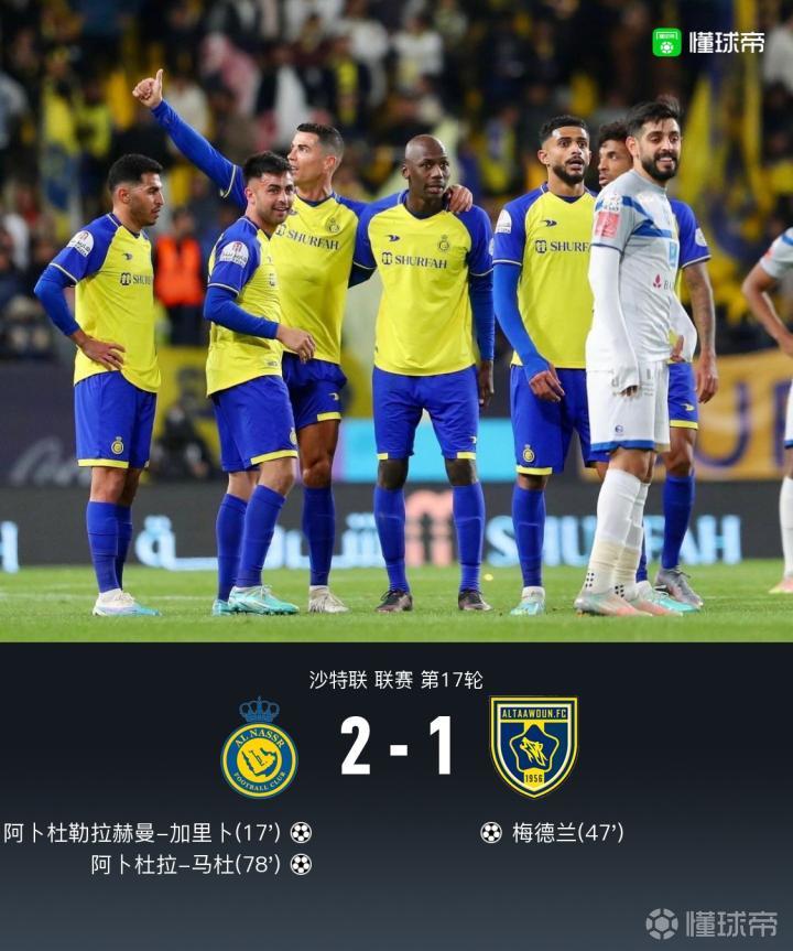 第78分钟,C罗停球变回敲,阿卜杜拉-马杜抓住机会破门被裁判吹掉,之后裁判观看完VAR后判定C罗没有越位和干扰,阿卜杜拉-马杜的进球有效,利雅得胜利2-1布赖代合作!