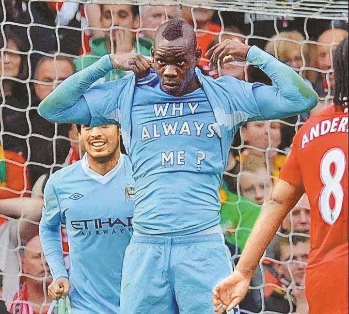 C罗的狂,梅西的傲,我只知道有一个人能够兼而有之。他是世界足坛真正的特立独行的那一个。2012年欧洲杯半决赛,他一脚爆射攻破了诺伊尔的龙门,随后脱衣做出“超级赛亚人”变身的动作;而前一年的英超曼市德比上,他进球后掀起球衣,露出了写有“Why Always Me?”的蓝色T恤,这一幕也成为足坛名场面。那一年,他也恰好21岁。