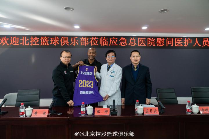 根据北京控股官方发布的镜头,在24日的活动现场,马布里和俱乐部领导共同为应急总医院送上了印有“2023”字样的纪念球衣,以及北控男篮主场球票。