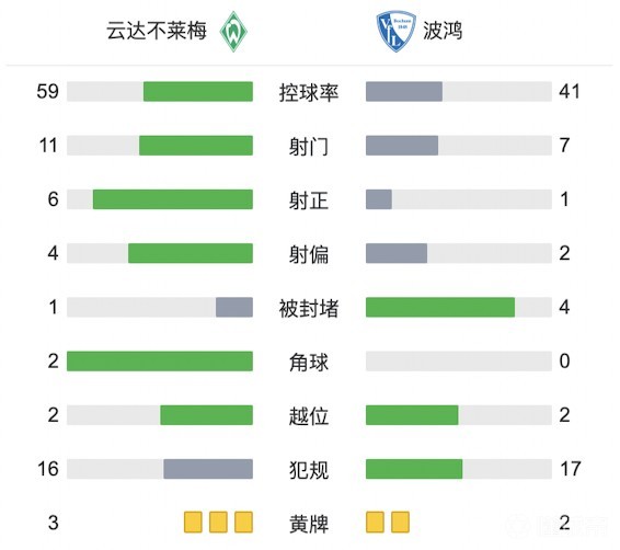 北京时间2月25日22:30,德甲第22轮比赛,不莱梅对阵波鸿。上半场,斯托格错失良机,菲尔克鲁格破门,半场结束前施密特再下一城;下半场,杜克施一脚任意球贴地斩得手,最终不莱梅3-0完胜波鸿。