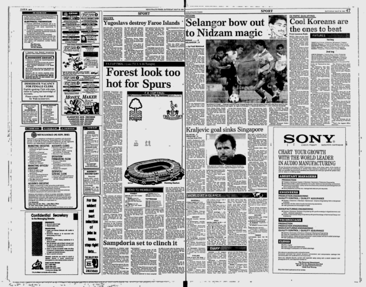 shinnosukekun本文来源于1991年5月18日《新海峡时报》,诺丁汉森林对阵托特纳姆热刺足总杯决赛的比赛前瞻。