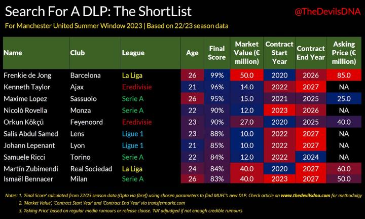 TDD:帮曼联找个拖后组织手——2023年夏窗候选