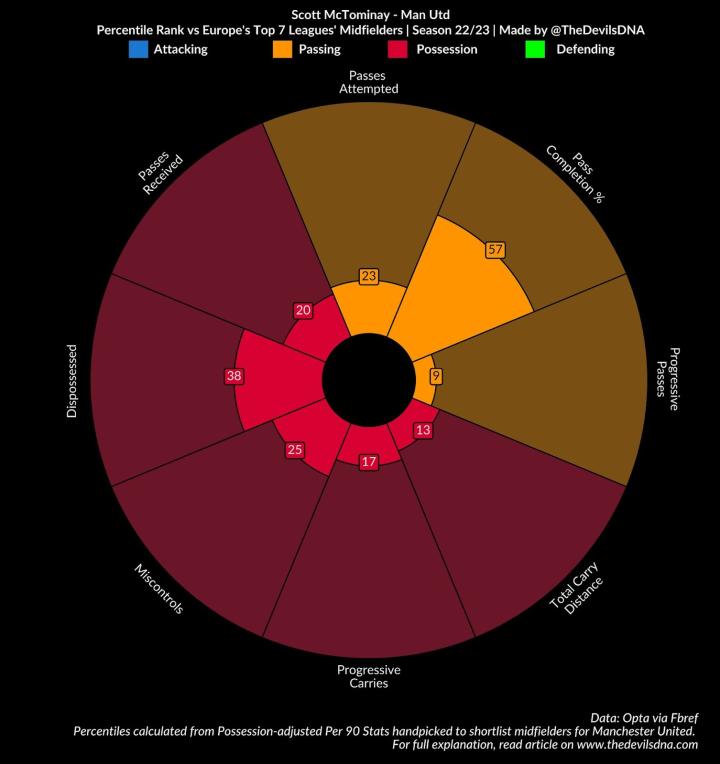 最后,麦克托米奈的适配度只有14%,对于这个26岁的球员来说看着真的很糟。当然,你也可以说他本赛季的定位是卡塞米罗的替补,所以本来就不会在进攻发起方面拿下多好看的数据,然而从目前的情况来看,麦克托米奈不符合双后腰中任何一个位置的需求,所以他在曼联的长远未来并不安稳。