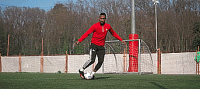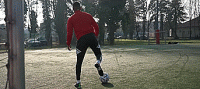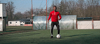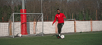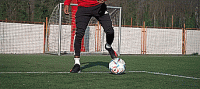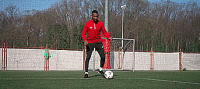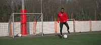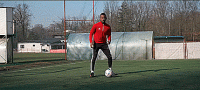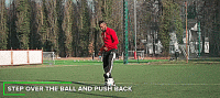 或者我们可以把球停下来,就像下面这样,然后砰的一声,将脚腕扭过来完成摆脱。我们可以在边线做这个动作,我们也可以在门前做这个动作,只要能确保我们的速度和节奏。