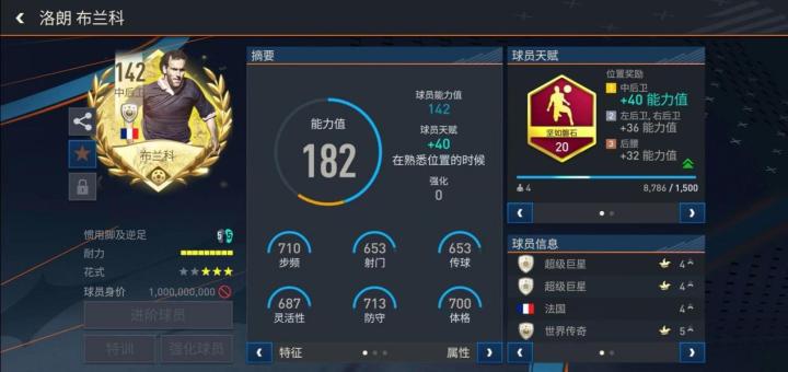 游戏中,布兰科在世界杯活动中推出了一张基础能力值142的传奇版本,天赋配备坚如磐石的他实战表现也相当强悍。布兰科不仅身材高大,抢点能力出色,而且他的反应速度和机动性也是同等模型球员中的顶尖水准,这让他既能担任站位稳定的拖后核心,也能进行一些主动冲抢完成断球,再加上进攻端强悍的头球能力,毫无疑问,这张布兰科依旧是游戏中最受欢迎,实力最强的顶级中卫。