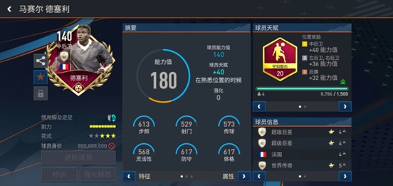 游戏中推出的这张世界杯传奇版本德塞利基础能力值达到140,配备了坚如磐石天赋。实战中,德塞利虽然身材不算高大,但是他的反应速度和补位意识堪称顶级,再加上超强的近身对抗稳定性和贴防能力,获取难度并不高的德塞利是一名极具性价比的优秀后卫。