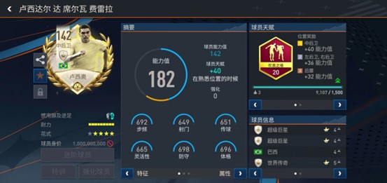 游戏中推出的这张世界杯传奇版本卢西奥的基础能力值达到142,是游戏中的卡王之一,而且同样是配备了叹息之墙天赋。实战中,卢西奥反应快、对抗强,不仅后场的站位防守效果出色,适时的上抢也能收到不错的效果。进攻端,卢西奥还有不俗的头球能力,他的提前卡位非常硬朗,起跳争顶时的抗干扰能力也很出色。他是一名攻守俱佳的优秀后卫。