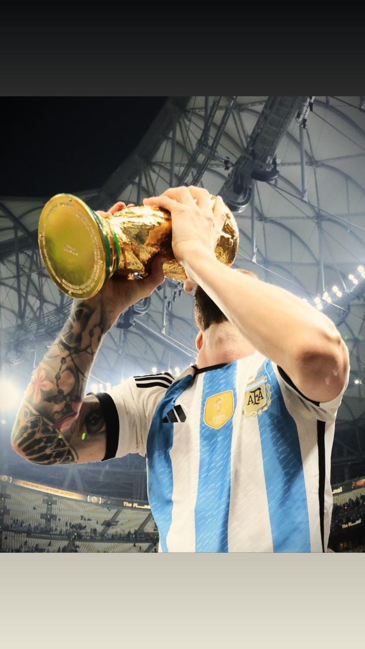 继续回味夺冠喜悦,梅西社媒晒高举大力神杯照ETChalmers @懂球帝2023-03-01 20:163月份第一天,梅西在社交媒体晒出世界杯夺冠后的捧杯照。去年12月18日,阿根廷在卡塔尔世界杯决赛击败法国,夺得冠军。夺冠后,梅西坐在阿圭罗的肩膀上高举奖杯,庆祝夺得职业生涯首座世界杯冠军。今日,梅西在社交媒体晒出他当时高举大力神杯的照片,再次回味夺冠喜悦。凭借世界杯夺冠,梅西在本周当选FIFA年度最佳球员。展开更多