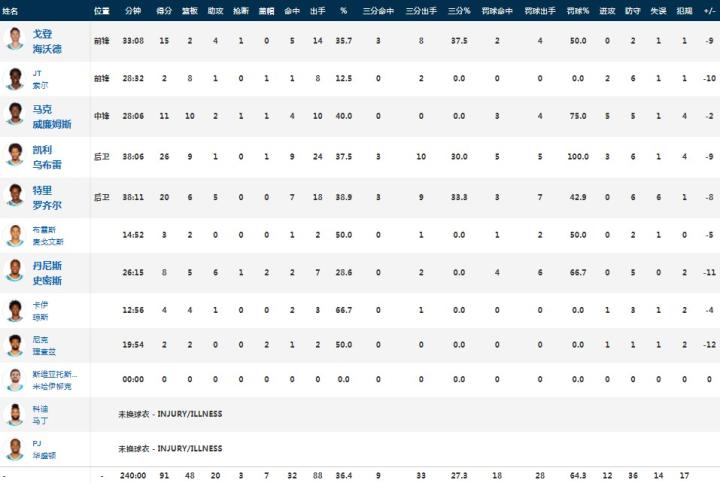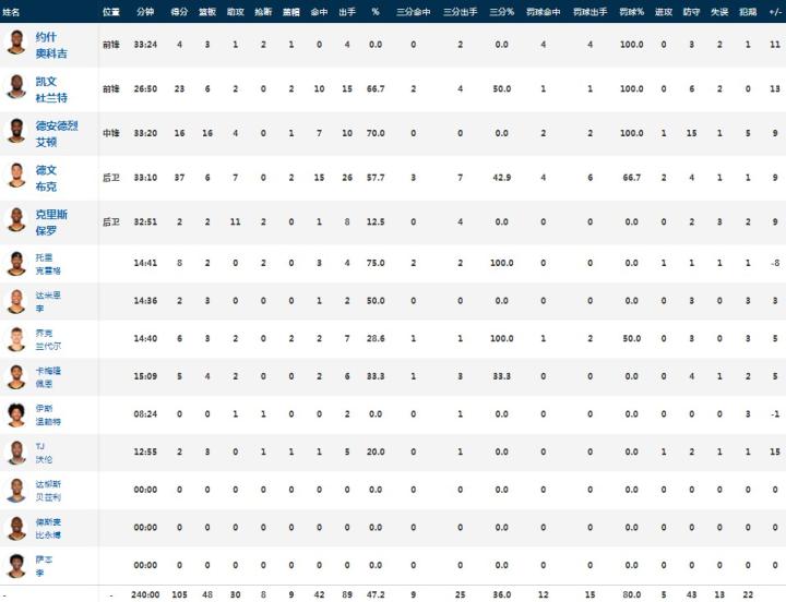 末节,黄蜂延续火热进攻手感,太阳这边杜兰特站出来连得得分将分差拉大至10分以上,黄蜂命中率下滑,太阳布克、艾顿相继得分逐渐确立胜局,全场结束,太阳105-91击败黄蜂。