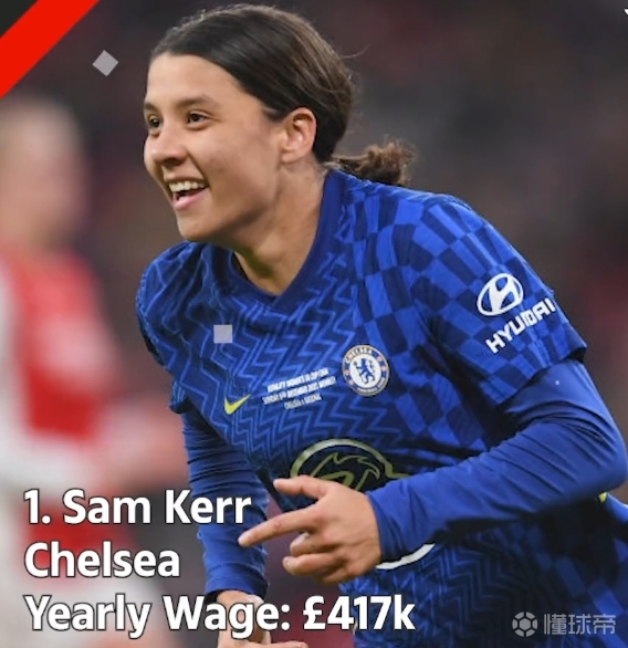 根据太阳报的数据,切尔西女足球员萨姆-克尔以41.7万镑成为年薪最高的女足球员