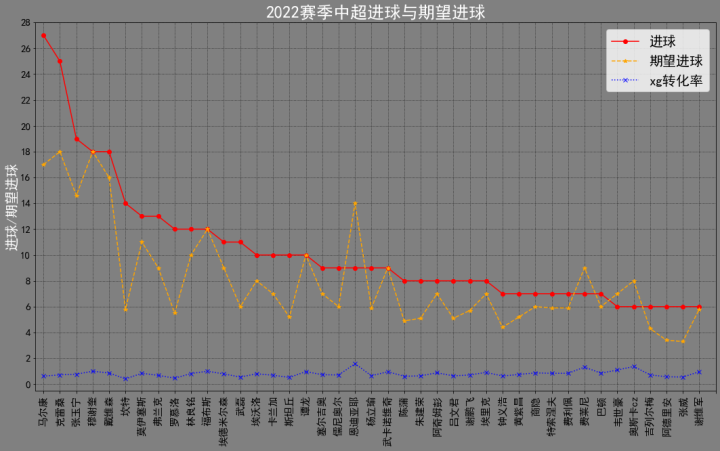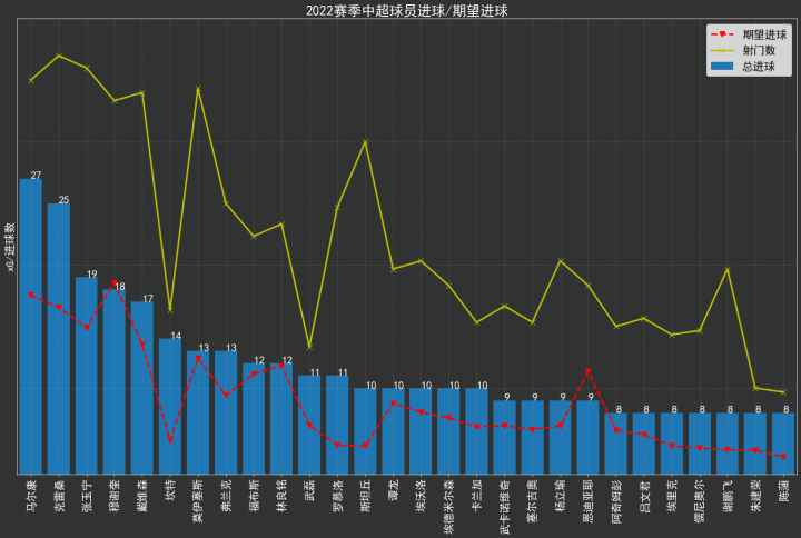 中超2022赛季结束,现在来做一个射门+进球方面的分析总结,大家看看自己主队球员的表现吧。