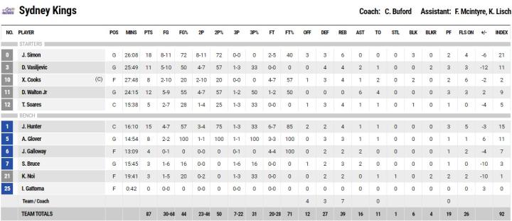 NBL总决赛:破坏者客场95-87悉尼国王,大比分1-0领先