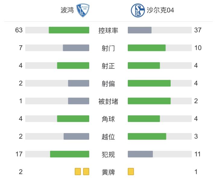 最终全场比赛结束,波鸿0-2沙尔克04。