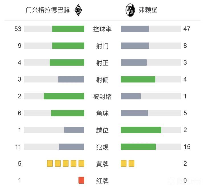 最终全场比赛结束,门兴0-0弗赖堡。