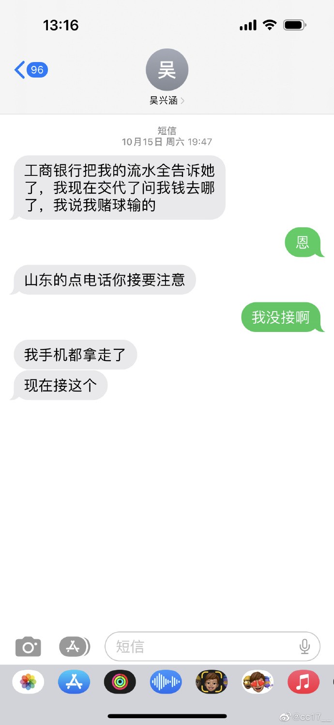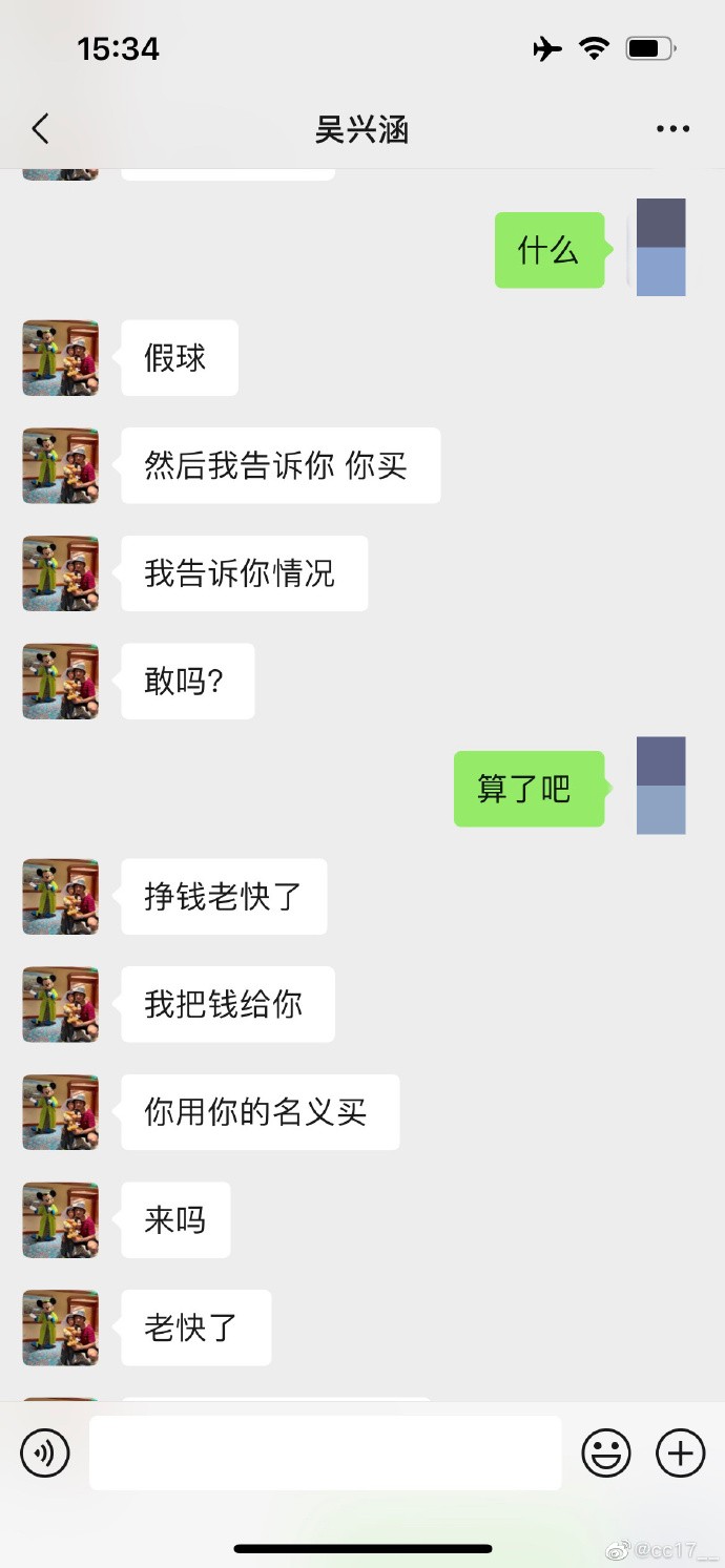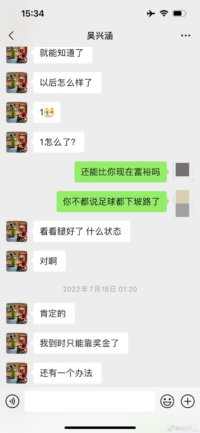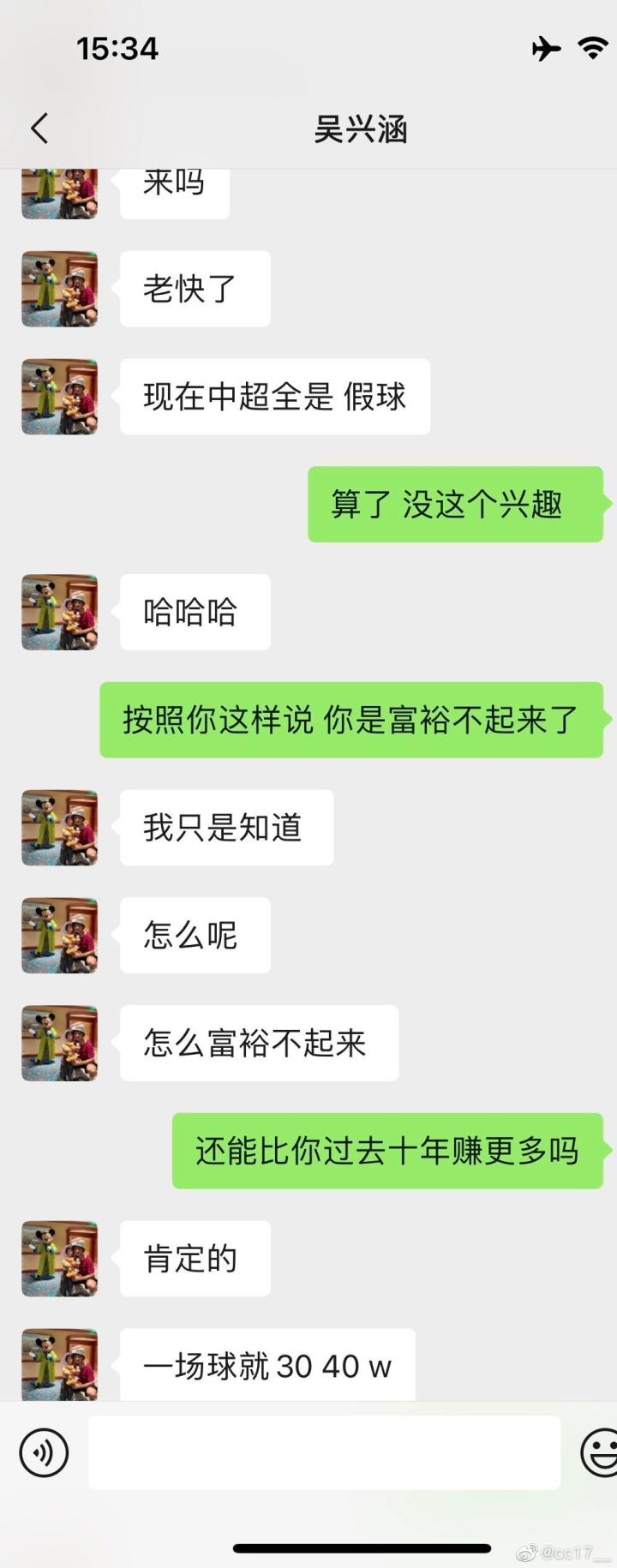 事件女主晒与吴兴涵聊天记录:中超都是假球,一场就30、40万