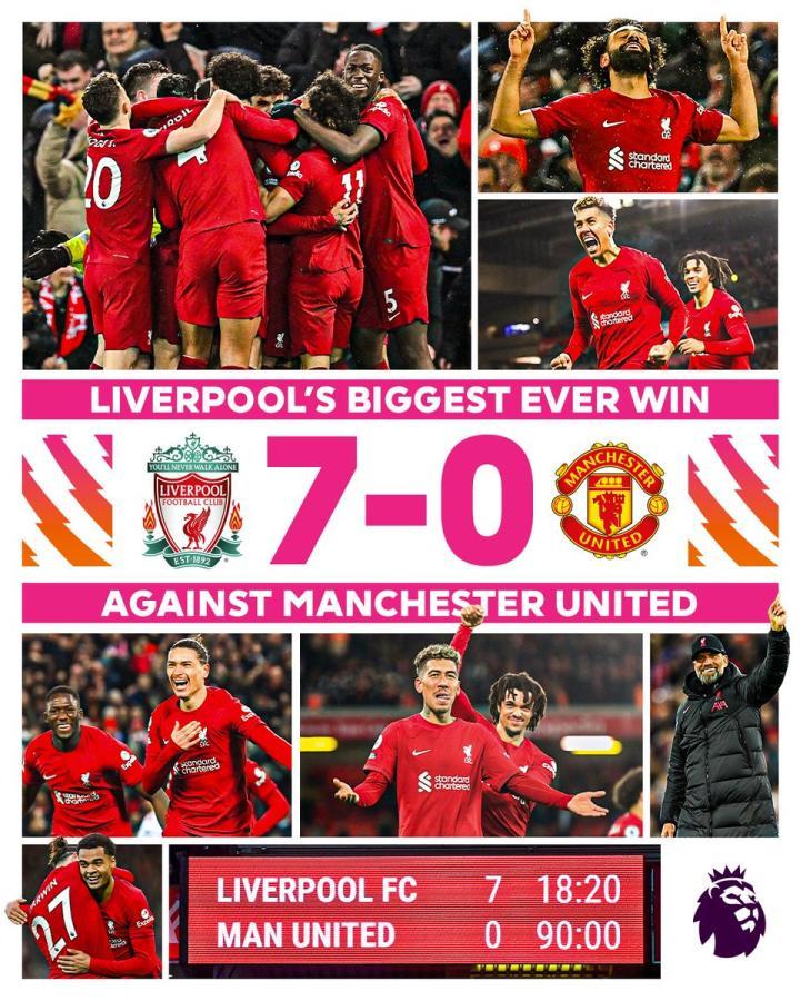 南看台1899一觉醒来,利物浦7比0血洗了曼联。
