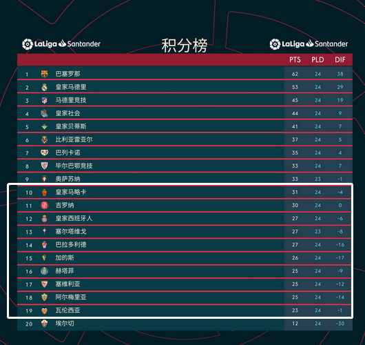 西甲就不存在和其他保级球队拉开距离一说,除了垫底的埃尔切,处于保级大圈的球队就没有3连败的,这让本赛季西甲保级形势越发激烈。