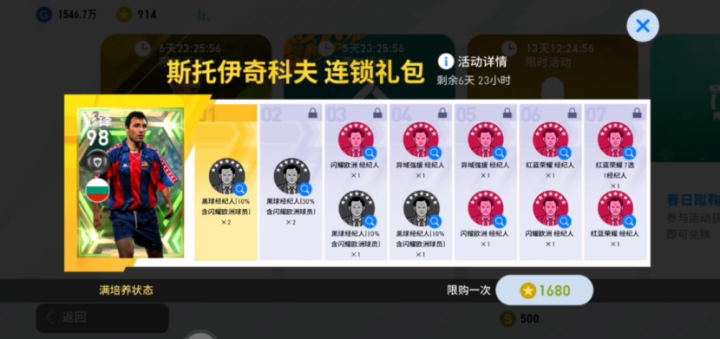 实况足球门柱君大家好,我是踩单车的周纳尔多。今天国服上架了史诗斯托伊奇科夫的连锁礼包,那么本次我们就来看看这期连锁礼包的性价比如何。不过以斯托伊奇科夫的实用性,能够进入连锁礼包属实让人惊讶,这期连锁礼包也是主要面向队套玩家。