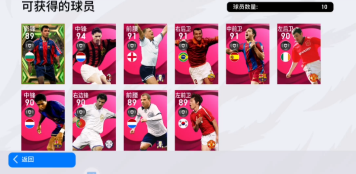 闪耀欧洲包球员如下: