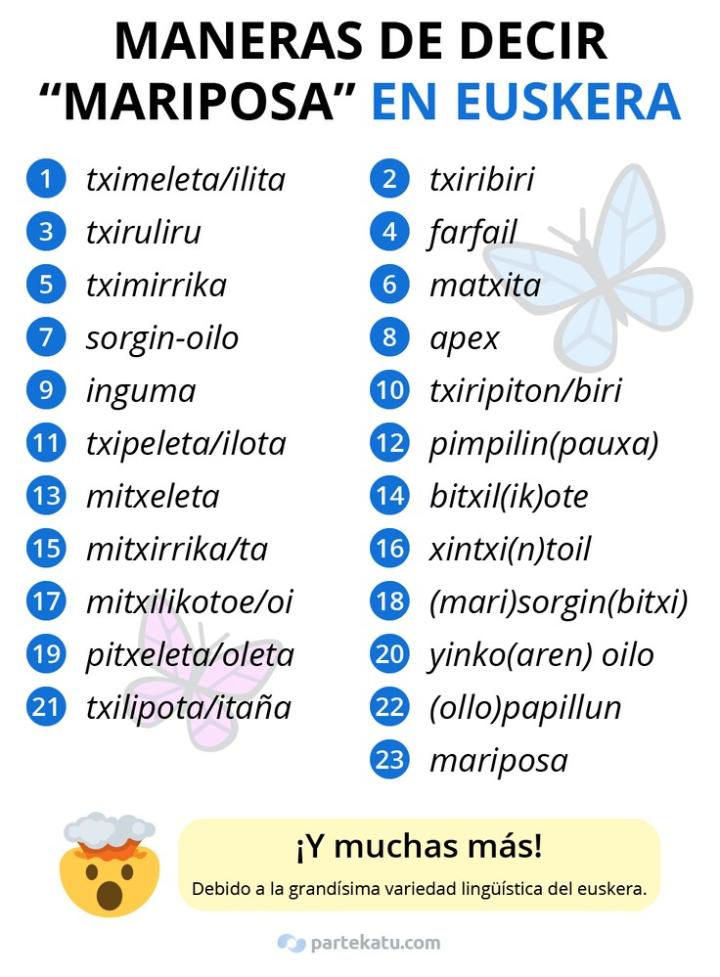 巴斯克语网站中简单列举蝴蝶的多种表达方式