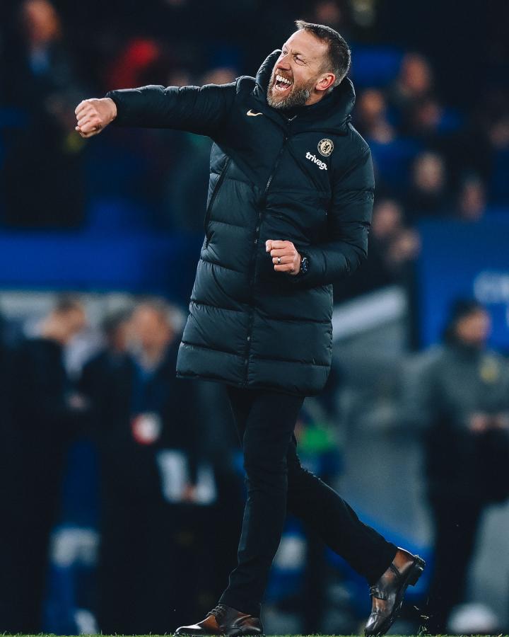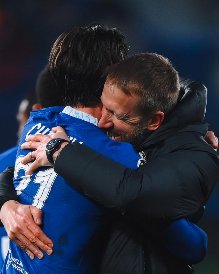 波特赛后与获胜功臣哈弗茨、奇尔韦尔和凯帕紧紧相拥,并挥拳庆祝。