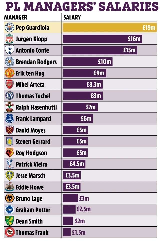 英超教练工资排行榜:瓜迪奥拉1900万英镑、克洛...曼城球迷协会2023-03-09 11:32英超教练工资排行榜:瓜迪奥拉1900万英镑、克洛普1600万英镑、孔蒂1500万英镑、波特1000万英镑、腾哈格900万英镑、阿尔特塔830万英镑……展开更多