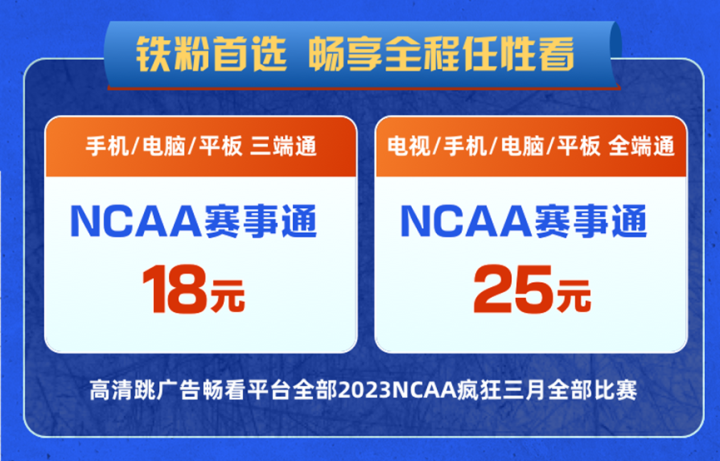 为了篮球铁粉们更好的观看赛事,爱奇艺体育特别推出了“NCAA赛事通”,开通即可尊享高清画质、跳广告、多语解说等权益,畅看全程赛事。球迷们可以登录爱奇艺体育平台,自由选择适合自己的观赛产品。