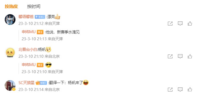 随后在评论区有球迷追问的追问下,记者申炜表示:“他说,新赛季水滴见。”