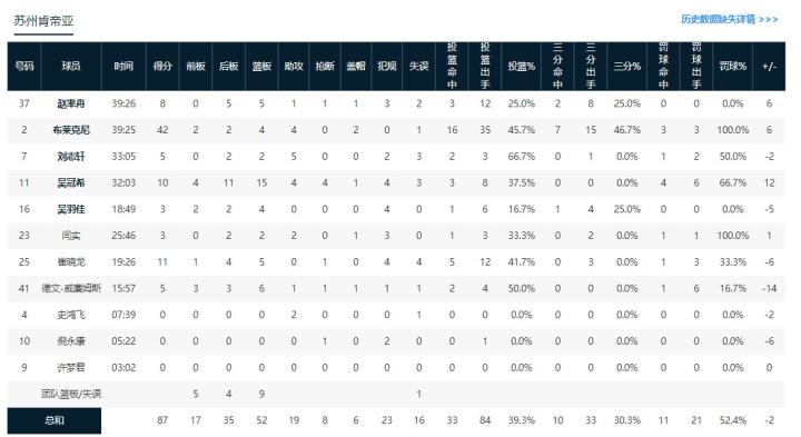 末节,苏州连续命中两记三分将比分拉开,但同曦随即也回应了攻击波将比分再度反超,随后一段时间两队比分开始交替上升,比赛也趋于白热化。最后阶段林崴完成跳投准绝杀,布莱克尼强投三分不中。全场比赛结束,同曦89-87苏州。