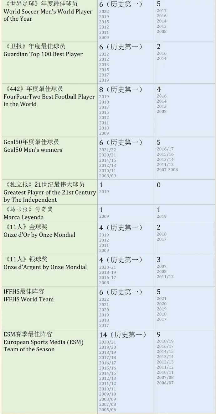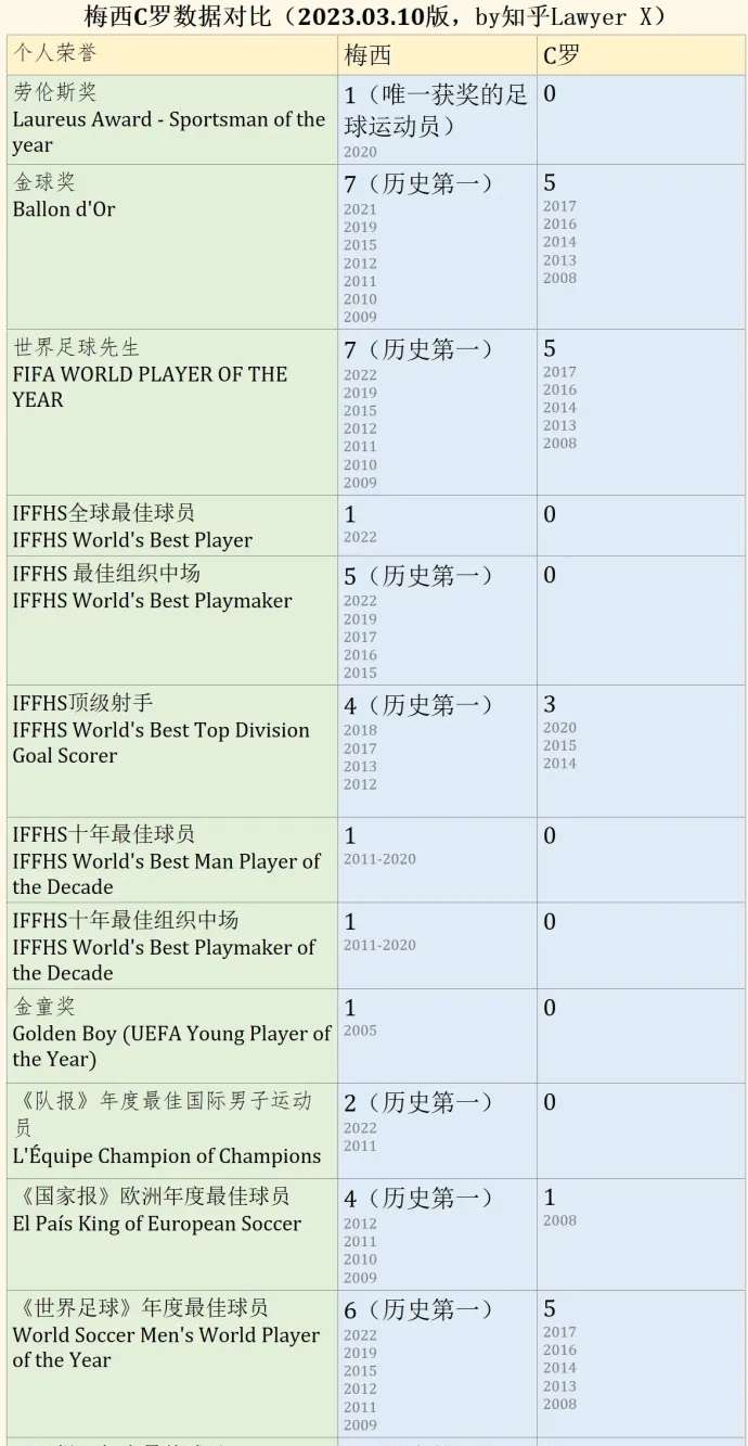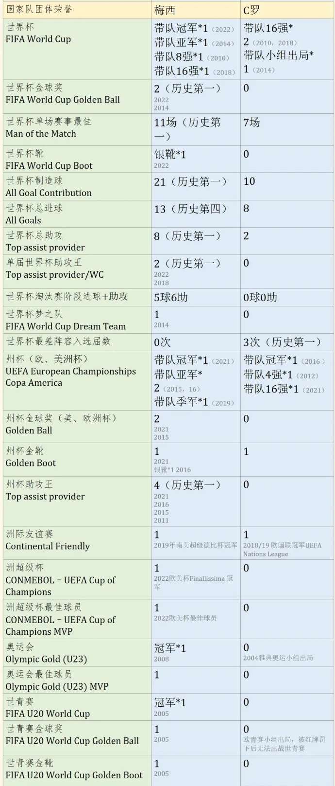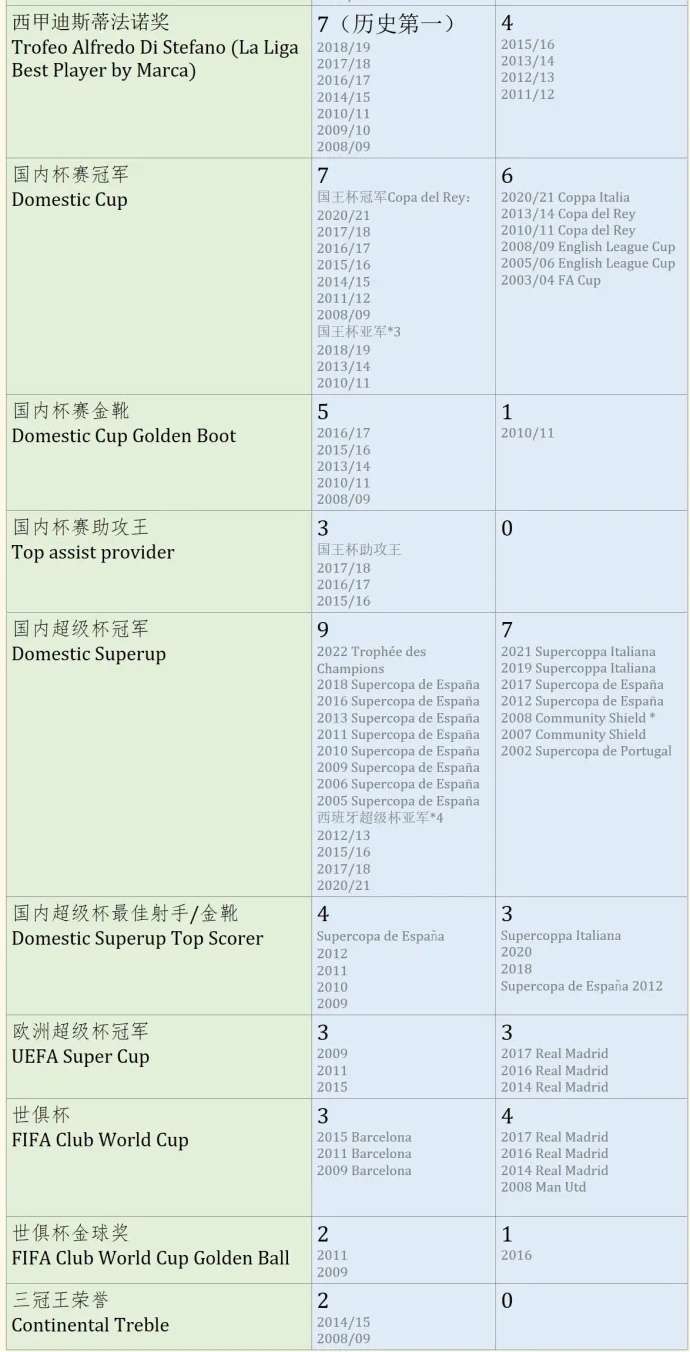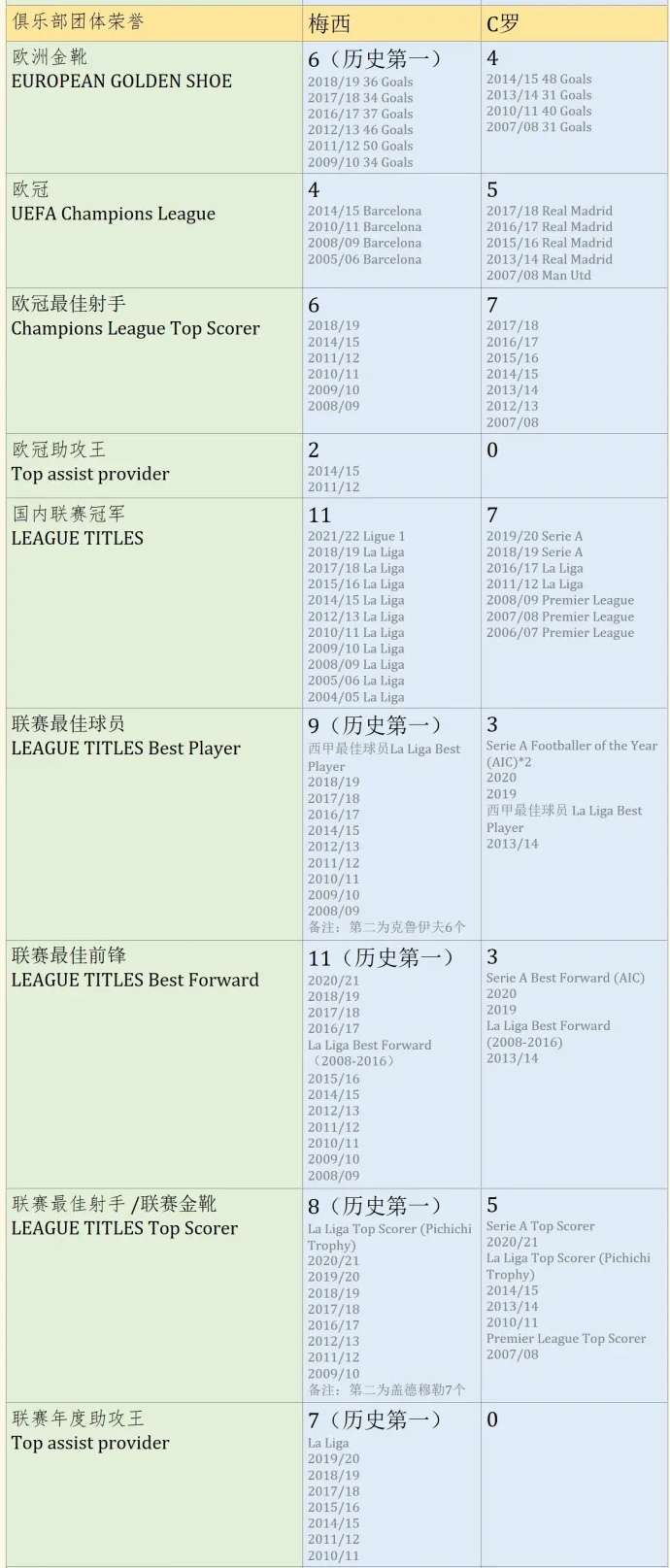 梅西C罗荣誉对比excel表(转自BzhanUp老废物江关)