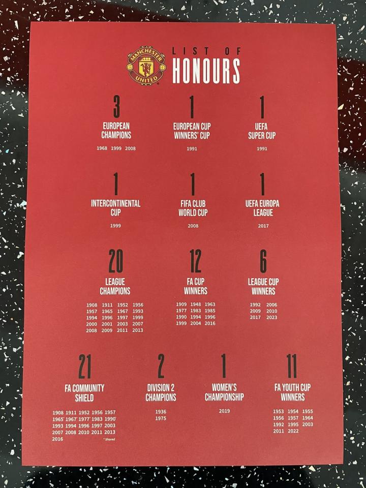 记者晒曼联官方荣誉表,新增了2023年联赛杯冠军ETChalmers @懂球帝2023-03-12 21:28主场对阵南安普顿赛前,曼联官方给记者们发放了一张更新后的荣誉表,新增了联赛杯冠军。2月底,曼联在联赛杯决赛击败纽卡,夺得队史第六座联赛杯冠军,结束了近6年的冠军荒。对阵南安普顿赛前,曼联跟队记者们在社交媒体晒出了曼联官方荣誉表,新增了2023年联赛杯冠军。展开更多