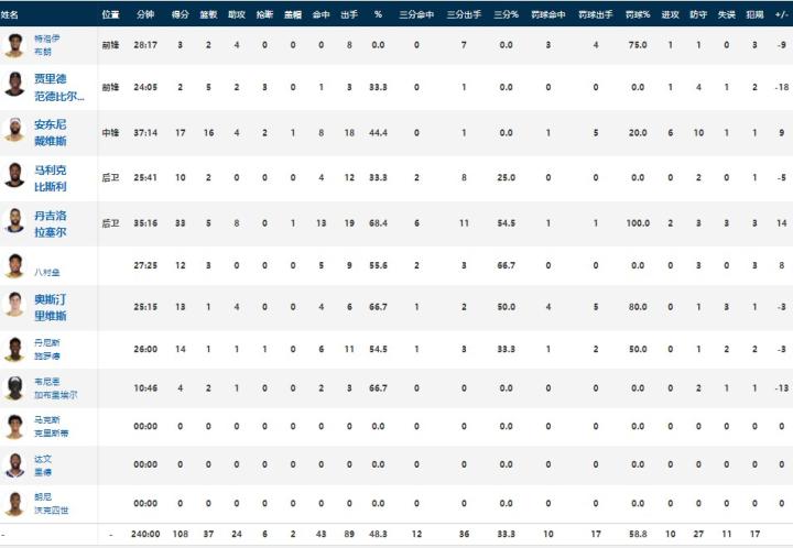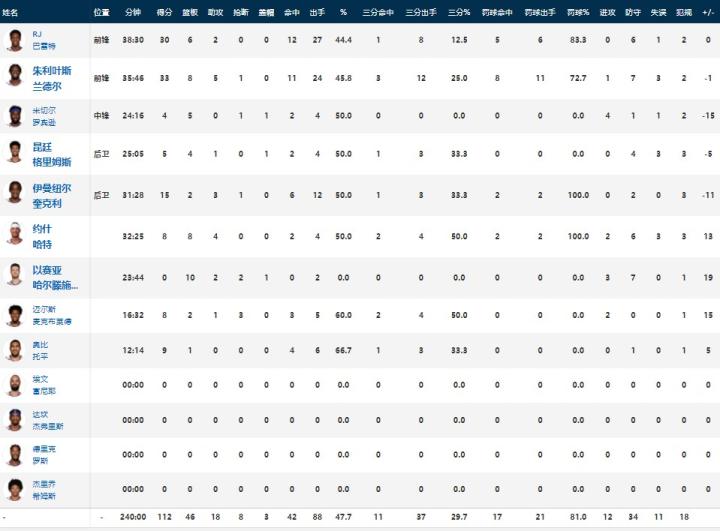 末节,尼克斯延续着出色状态继续掌握场上主动,并依靠托平和巴雷特的出色发挥将优势拉开至两位数,湖人虽然外线手感不佳但凭借连续冲击内线得手,还是在末段将比分迫近。最后时刻哈特两罚全中,拉塞尔抢攻三分未果。全场比赛结束,湖人108-112尼克斯。