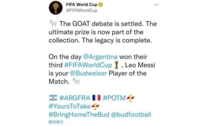 官方承认梅西是第三代球王,这是由于FIFA的推特...Lmuzafar628 @懂球帝2023-03-13 15:07官方承认梅西是第三代球王,这是由于FIFA的推特直接宣告梅西是GOAT,算是承认了梅西是第三代球王,FIFA也不再掩饰,直接发文晒出了梅西获得全场最佳的海报,并且配文:GOAT之争已经结束,世界杯现在是梅西收藏室的一部分,传奇完整了。这代表着,FIFA承认梅西的历史地位。展开更多