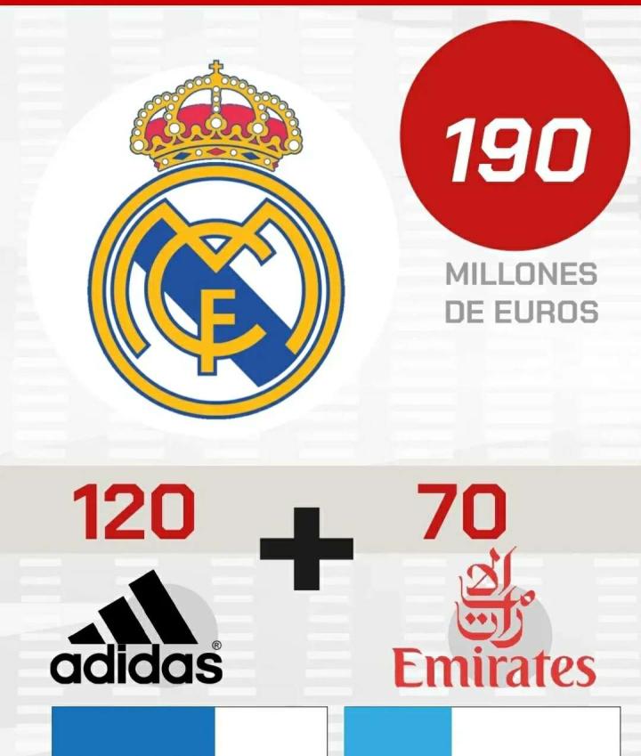 国际足坛球衣赞助主合同排行榜:1、皇马:阿迪达斯...