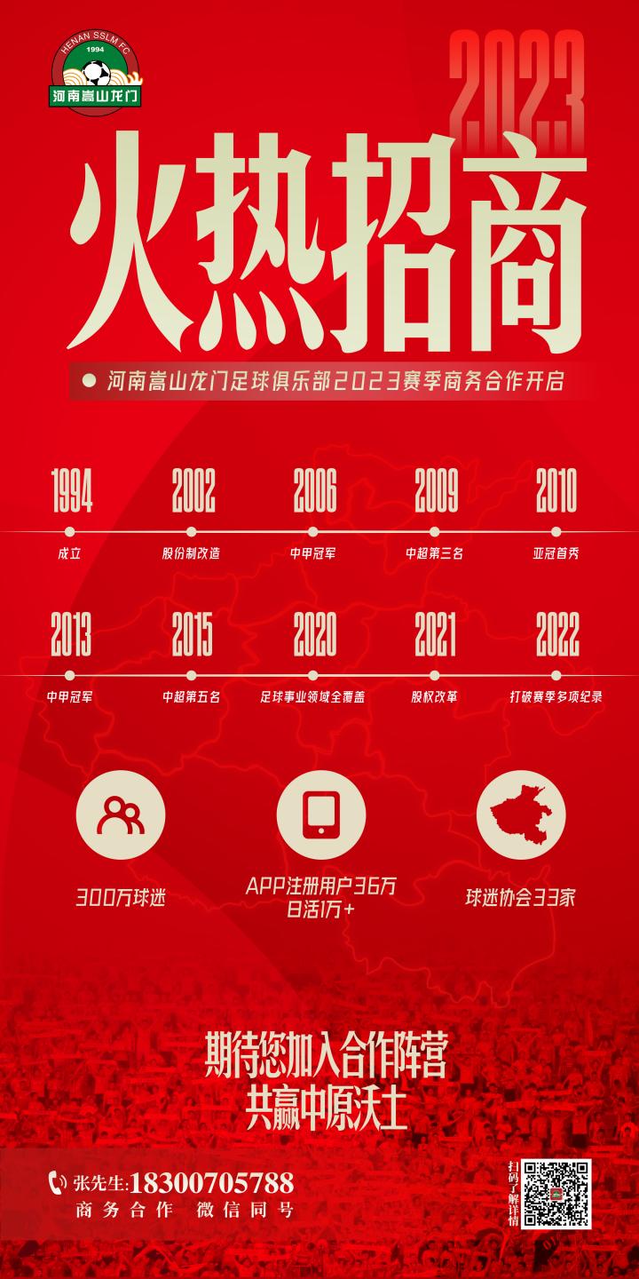 河南嵩山龙门足球俱乐部2023赛季商务合作火热开启!